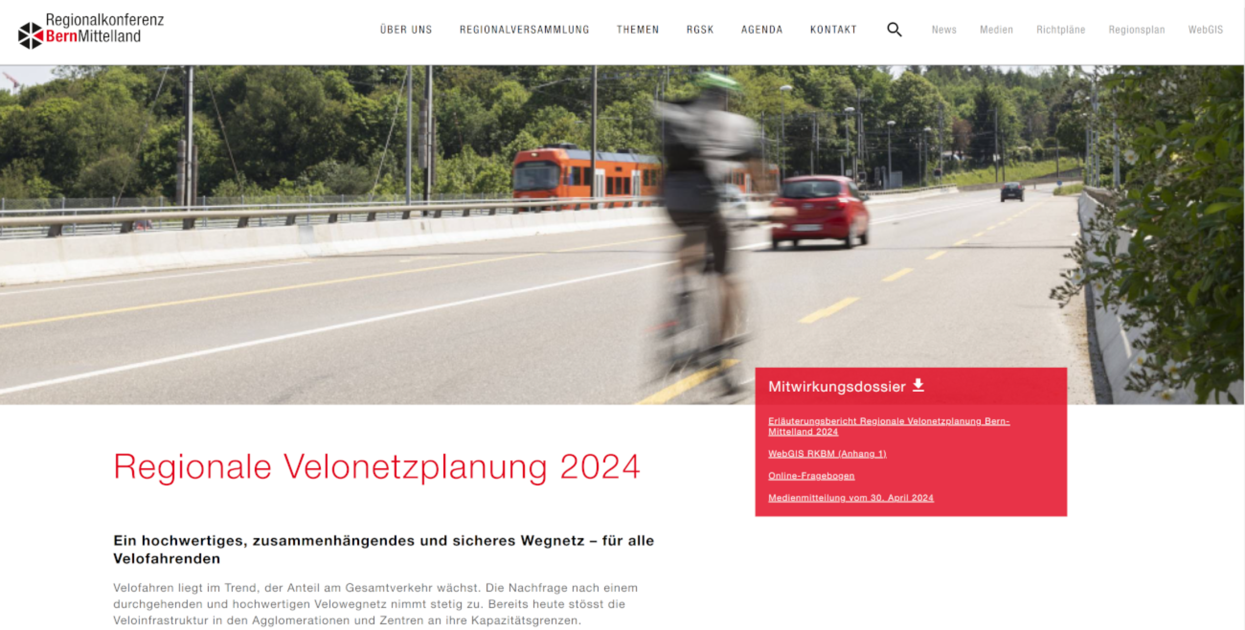 Die Regionale Velonetzplanung RVNP dient der Überprüfung und Optimierung des regionalen und kantonalen Velowegnetzes. Die Netzplanung definiert die notwendigen Massnahmen zur Schliessung von Netzlücken und zur Verbesserung von Linienführungen und zeigt den Handlungsbedarf für die angestrebte Qualitätssteigerung bei der Veloinfrastruktur auf. Ein prioritäres Ziel der RVNP ist es, Massnahmen zuhanden des Regionalen Gesamtverkehrs- und Siedlungskonzepts RGSK und des Agglomerationsprogramms AP des Bundes festzulegen: Dies ist Voraussetzung für die Finanzierung eines Ausbaus der Veloinfrastruktur über Bundes- und Kantonsgelder.