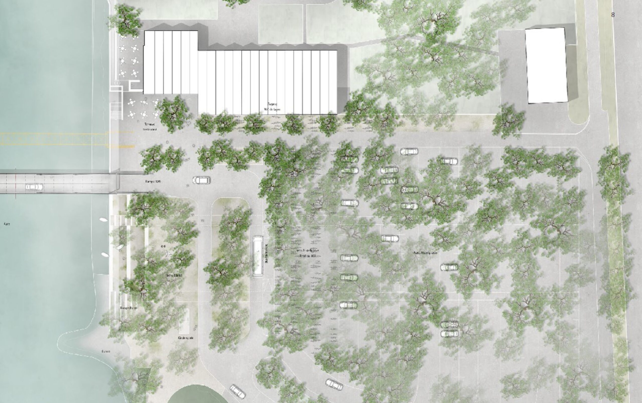 sind die ausgestrichenen Wannen nun gefüllt (Siehe Bild). Zu unserem Erstaunen sind die Inseln aber weder mit Bäumen bepflanzt noch sonst begrünt. Auch scheint der Untergrund komplett versiegelt. Damit wurde die Chance verpasst, weitere Massnahmen zur Reduktion der Hitzeinsel im genannten Bereich umzusetzen.